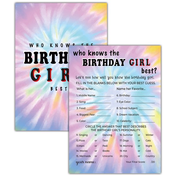 Who Knows The Birthday Girl Best Brigh Tie Dye Circle Birthday Game Cards 30 Birthday Game Card Set Srgame B004 Walmart Com